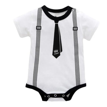 Design Elegante e Charmoso: Com um toque clássico e moderno, o nosso conjunto é ideal para todas as ocasiões, desde um passeio no parque até uma celebração em família. O padrão de gravata impressa adiciona um charme irresistível, fazendo com que o seu bebé se destaque com estilo.